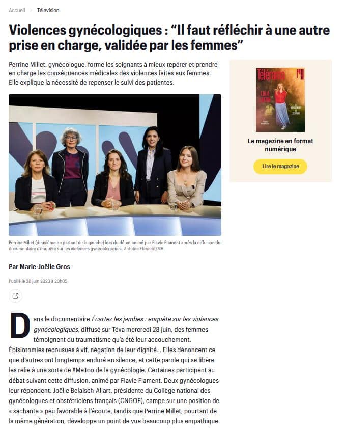 Interview Télérama suite au documentaire “Écartez les jambes” : enquête sur les violences gynécologiques, diffusé sur Téva le mercredi 28 juin 2023